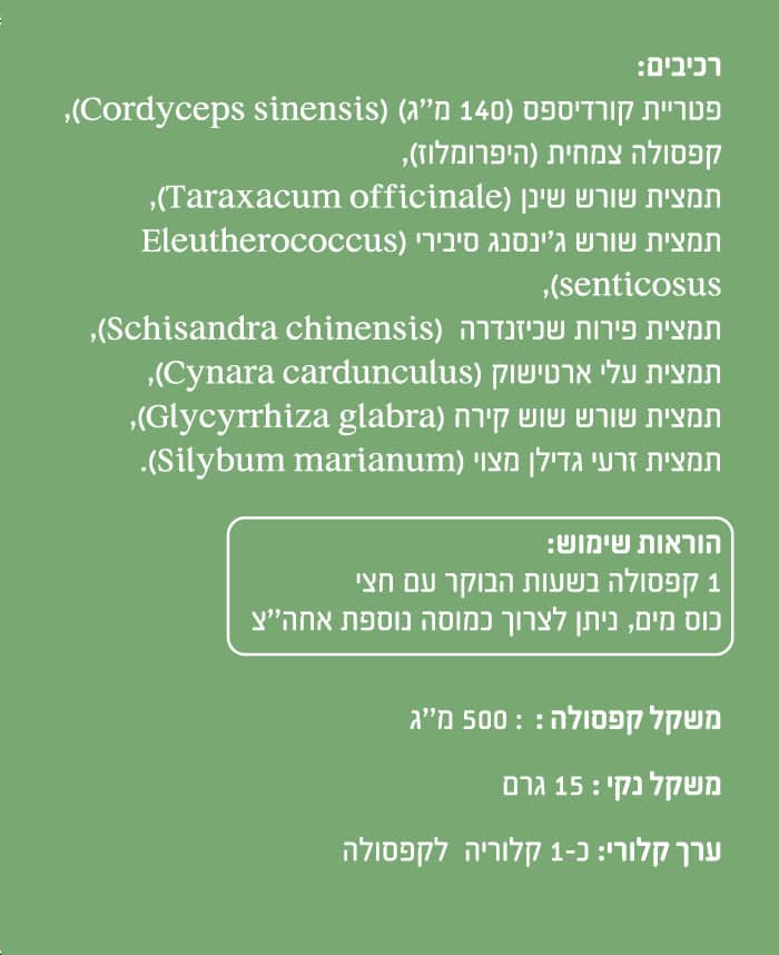 במקום שתקני כל תמצית בנפרד, ארזנו לך בקפסולה אחת את כל המרכיבים הקריטים לניקוי רעלים, התחדשות, חיזוק מערכת העיכול: